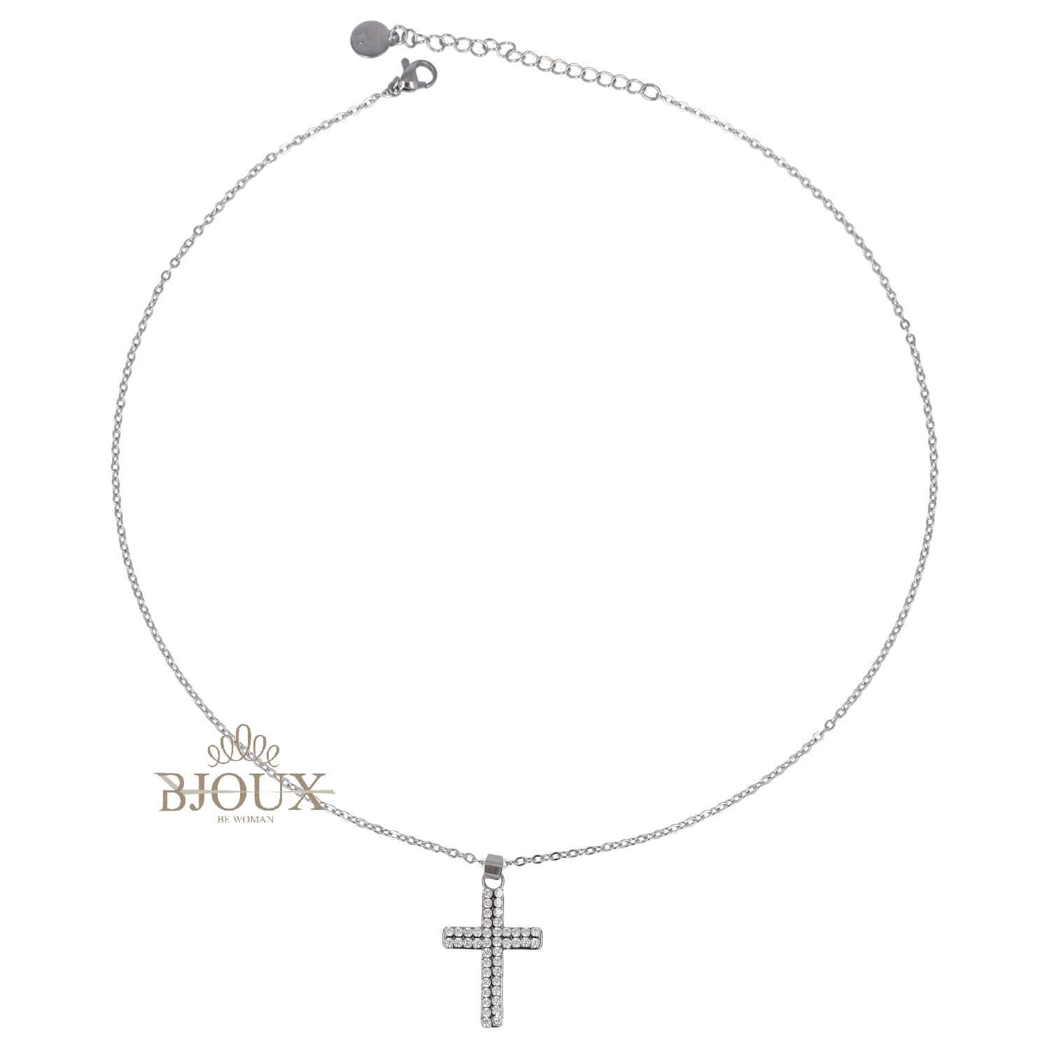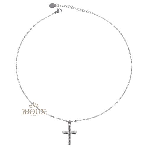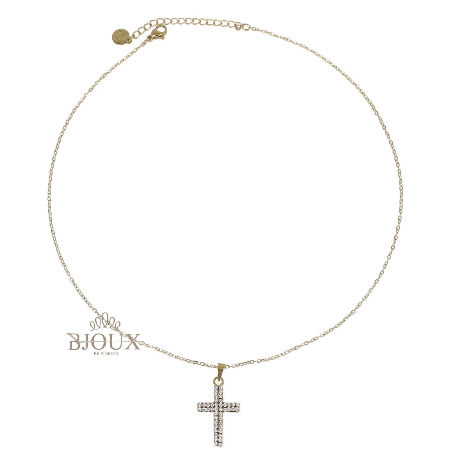 Collana catenina in acciaio inox dipinto, 40+5 cm estensione. Ciondolo crocetta di brillantini 2,5 x 1,5 cm
