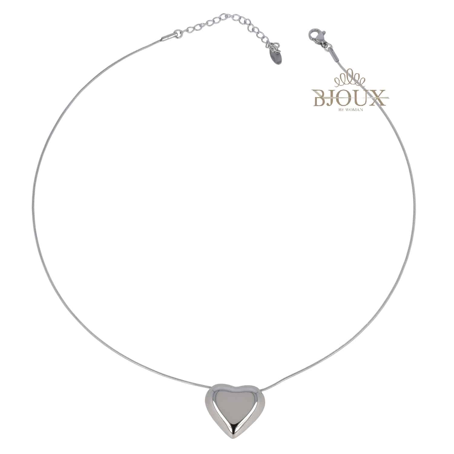Collana in acciaio inossidabile anallergico catenina a girocollo con pendente cuore passante bombato 2 cm x 1 cm spessore