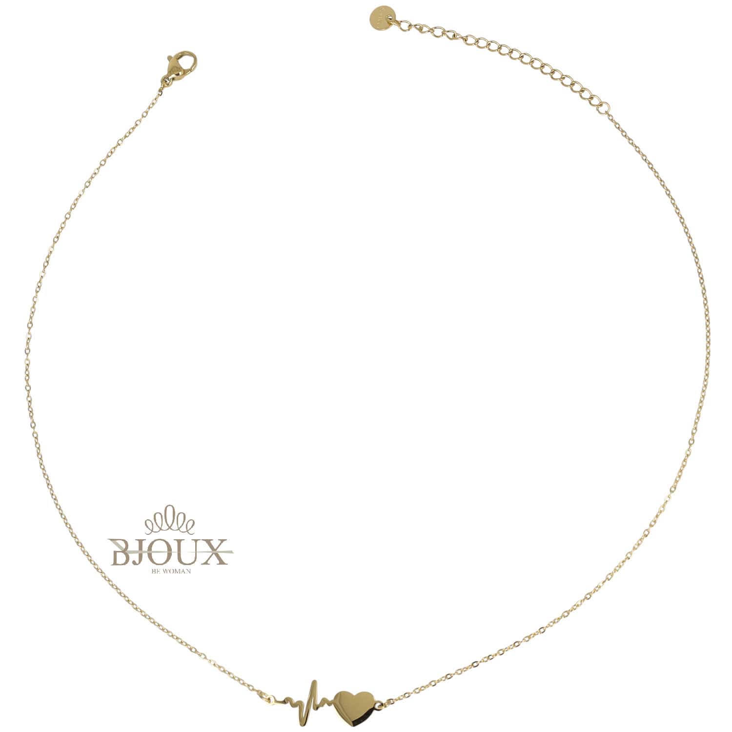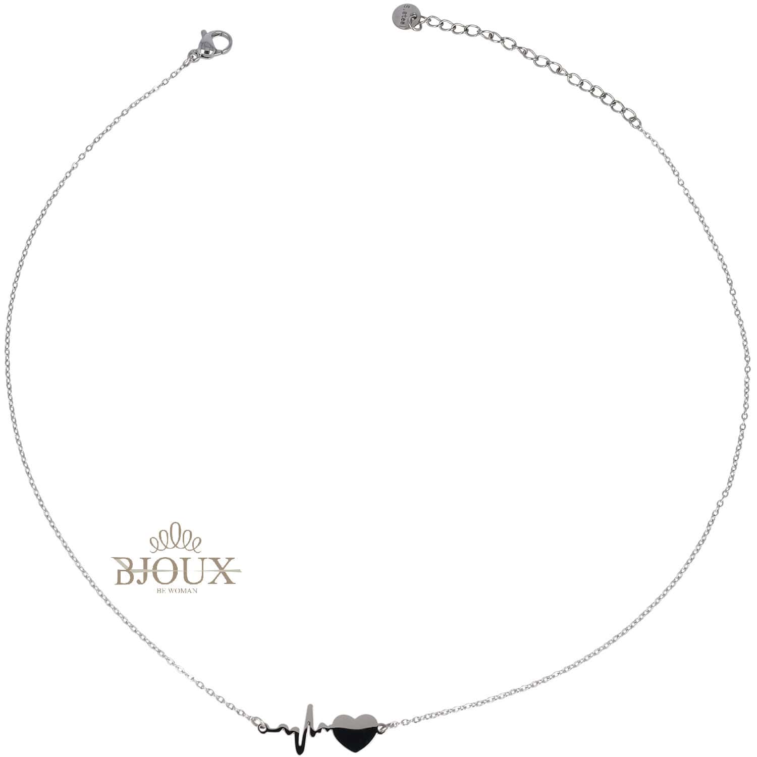 Collana di bigiotteria in acciaio inossidabileย , lunghezza massima 37cm + 5 cm estensione con centrale cuoricino con battito cardiaco da 2 cm totali