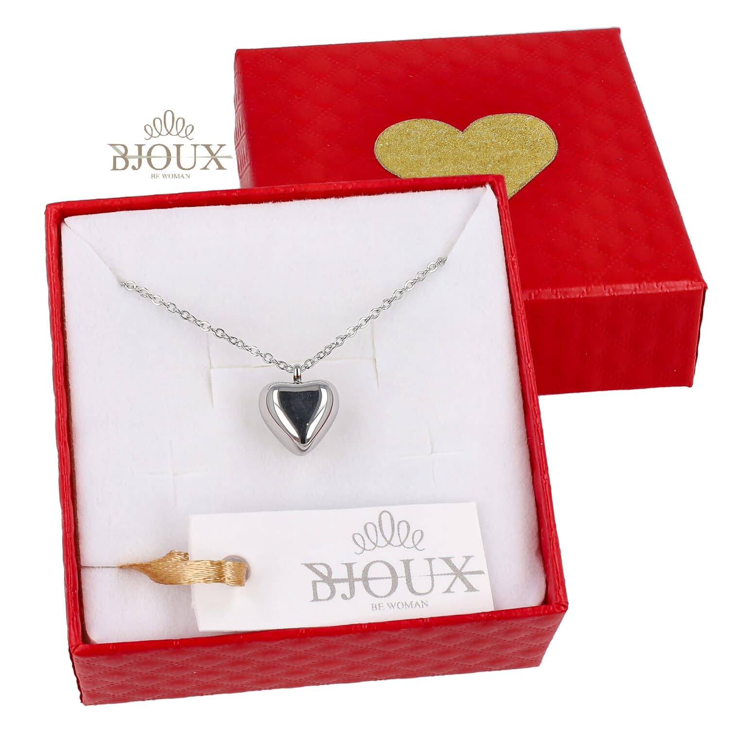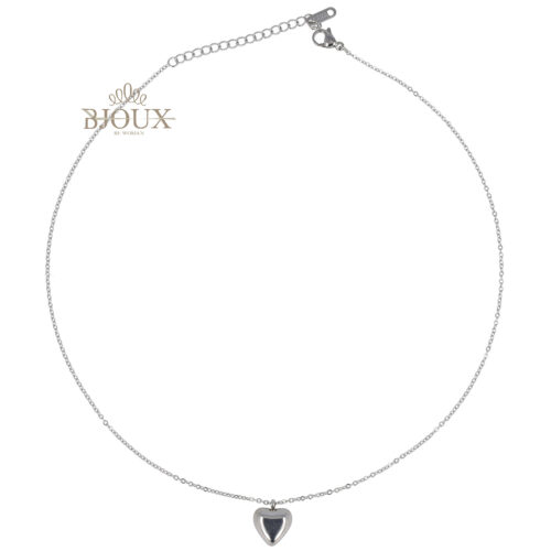 Collana di bigiotteria in acciaio con cuoricino bombato . Lunghezza 20 cm + 5 cm estensione. Con astuccio 7×7