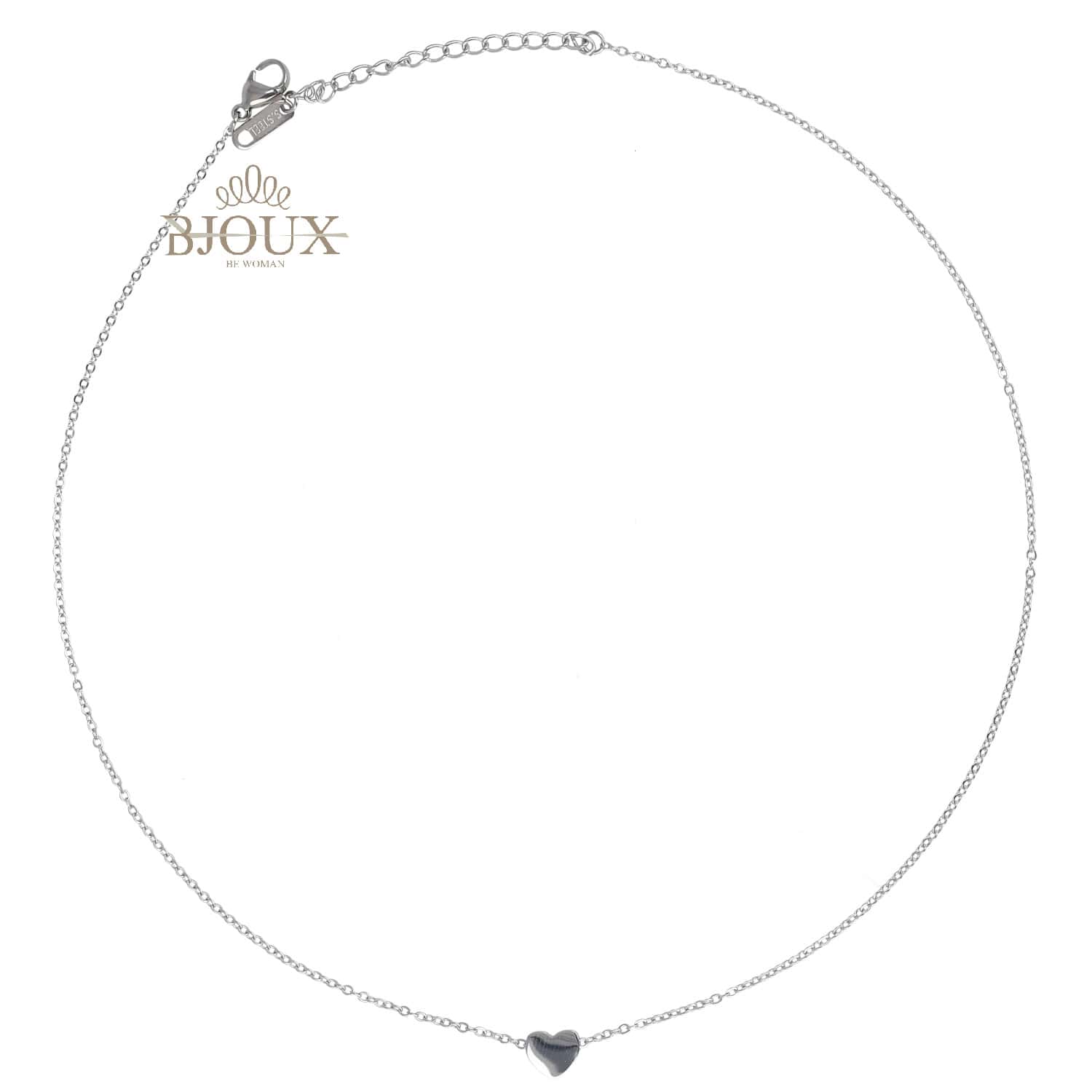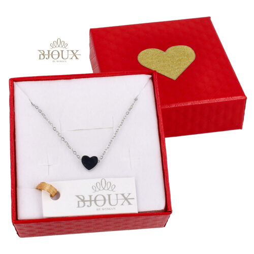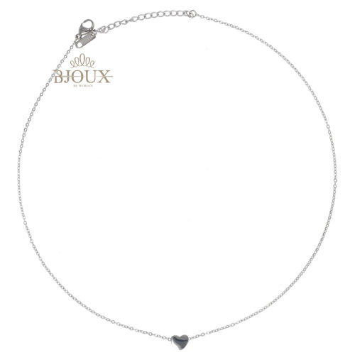 Collana di bigiotteria in acciaio con cuoricino passante . Lunghezza 20 cm + 5 cm estensione. Con astuccio 7×7