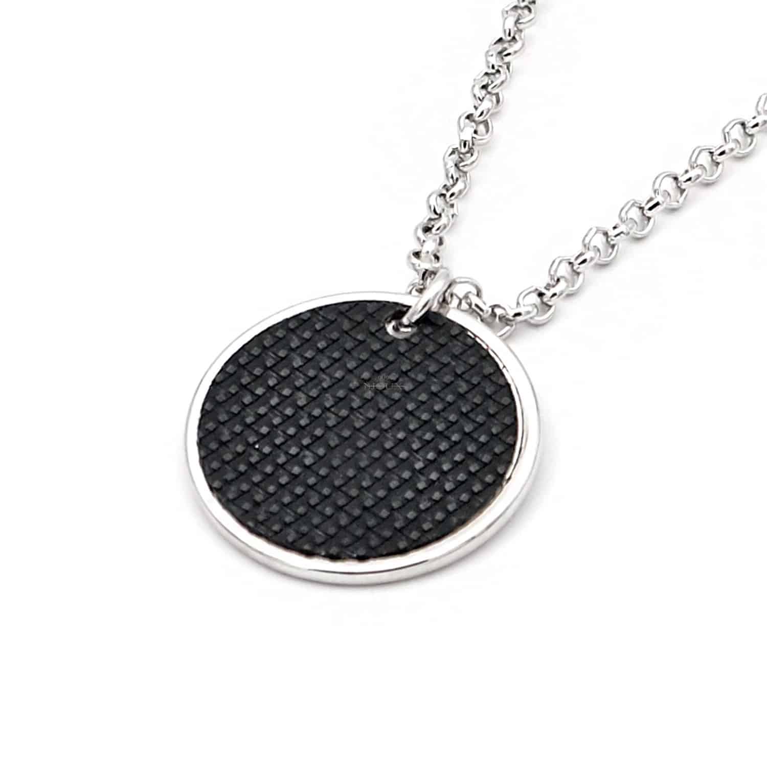 Collana da uomo catena in ottone con ciondolo pendente tondo gommato nero. Lunghezza 25 cm + 5 cm di estensione