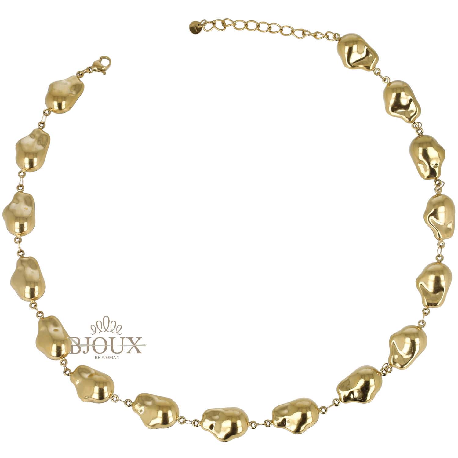 Un design innovativo e di tendenza: questa collana in acciaio presenta maglie bombate con effetto irregolare, che riflettono la luce in modo unico
