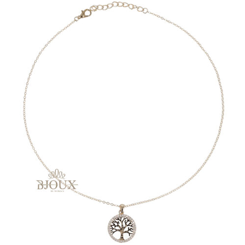 Collana da donna in ottone lunghezza 40 + 5 cm con ciondolo albero della vita diametro 2 cm. In astuccio regalo 7×7