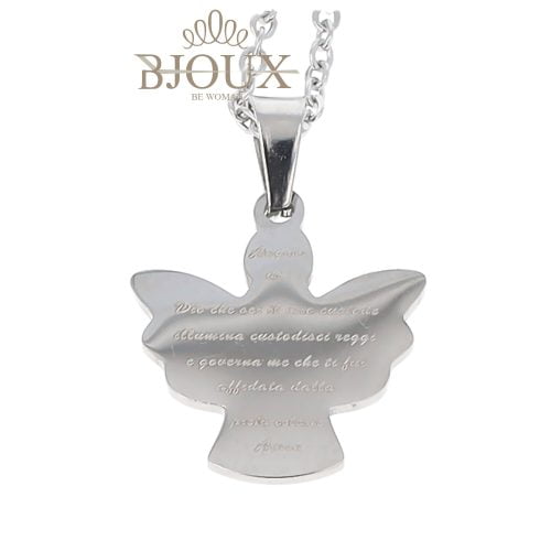 Collanaย in acciaio inossidabile con pendente a forma di angelo disponibile in argento o gold rose.