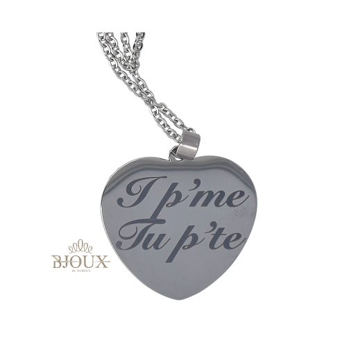 Collana in acciaio inossidabile a catena e charms cuore pendente da 2,5 cm. Frase “I p’ Me , tu p’ te”