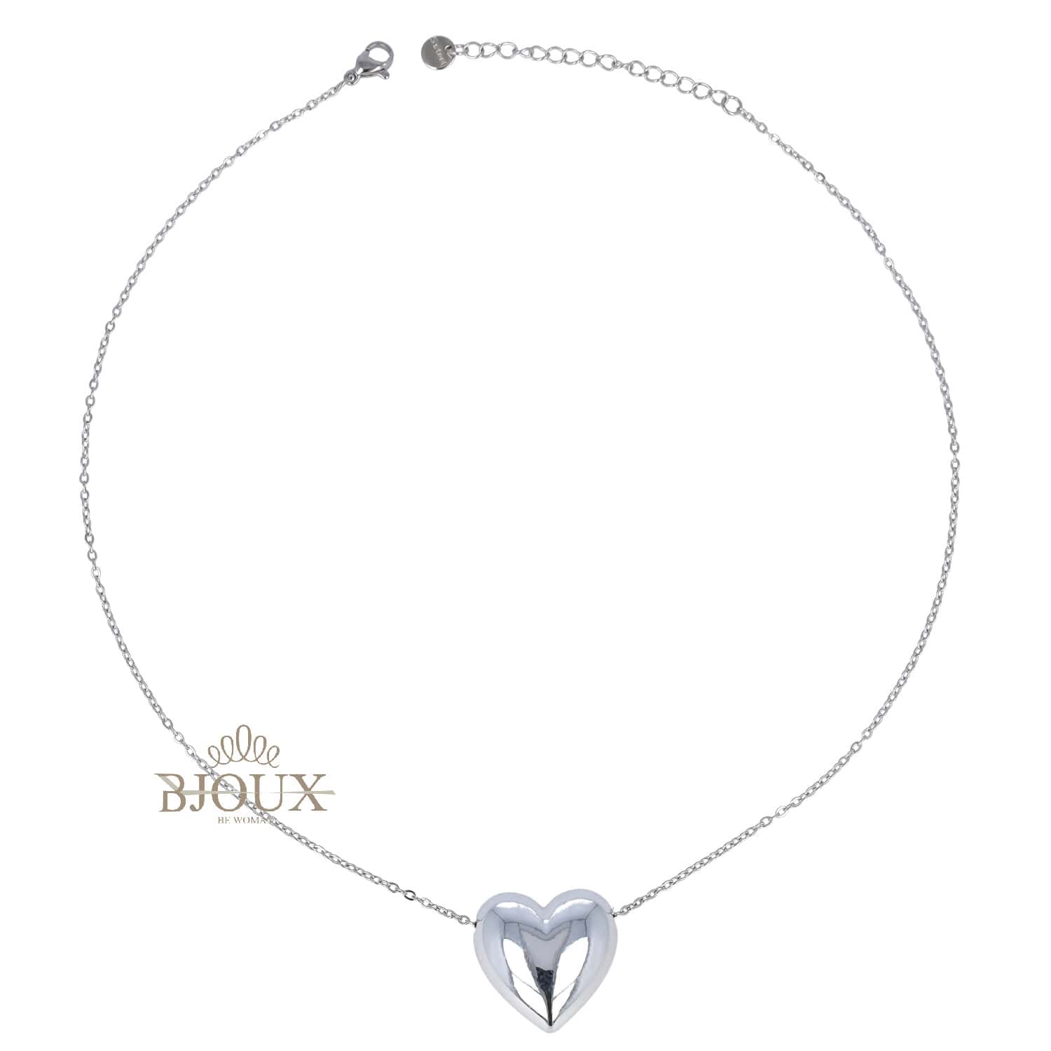 Collana bigiotteria con catenina in acciaio regolabile 42+5 cm , con ciondolo cuore bombato passante in ottone da 2 cm