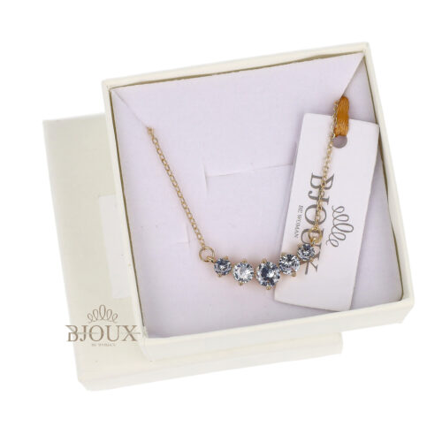 Collana da donna in ottone lunghezza 40 + 5 cm con 5 punti luce a gradazione davantino. In astuccio regalo 7×7