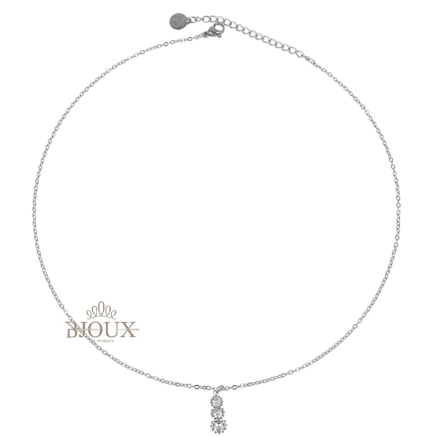 Collana catenina in acciaio inox dipinto, 40+5 cm estensione. Ciondolo centrale a composto da tre castoni strass , lungh. ciondolo 1,5 cm totali