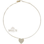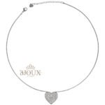 Collana donna modello girocollo. Girocollo composto da una catenina sottile con passante a forma di cuore in 3d con pavè di zirconi.
