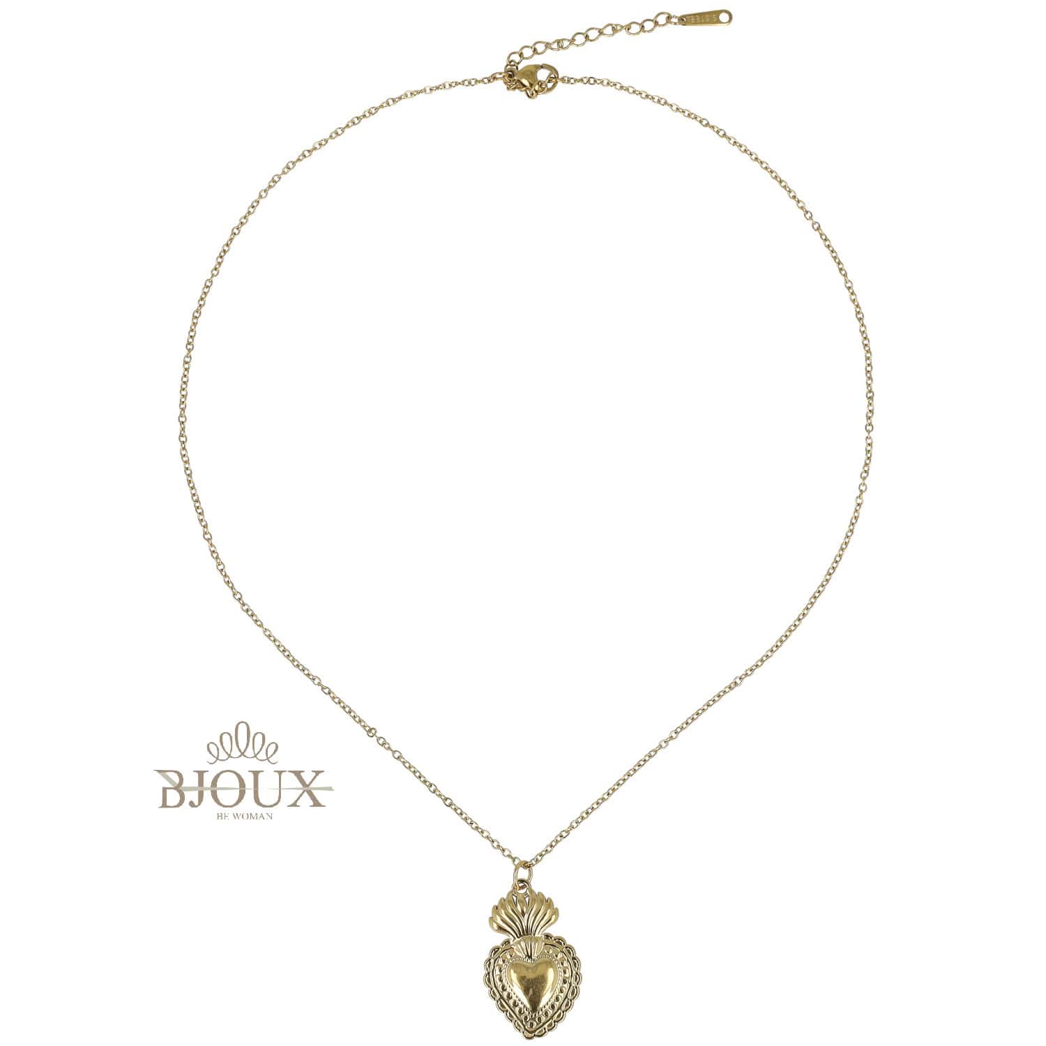 Collana in acciaio inossidabile che racchiude tutta la potenza simbolica del cuore sacro. Realizzata in acciaio dorato lucido, presenta un pendente a cuore sacro inciso nei dettagli, simbolo di amore e protezione.