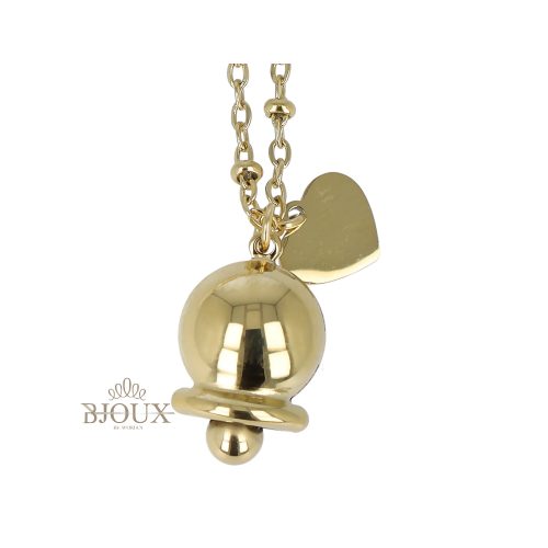 Collana di bigiotteria girocollo inย acciaio da 40+5 cm con perdente campanella Capri da 1,5 cm e cuoricino