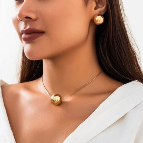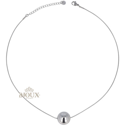 Collana di bigiotteria in acciaio catena con pallini , 40+5 cm con sfera centrale diametro 15 mm. In due colorazioni