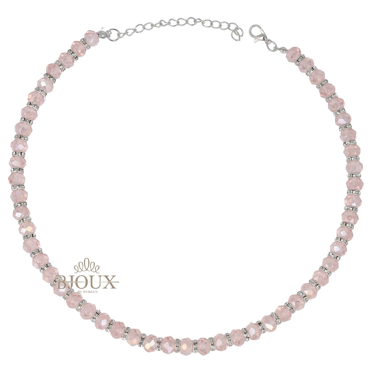 Collana bigiotteria in acciaio inossidabile con estensione, composta da cristalli in vetro colorato.