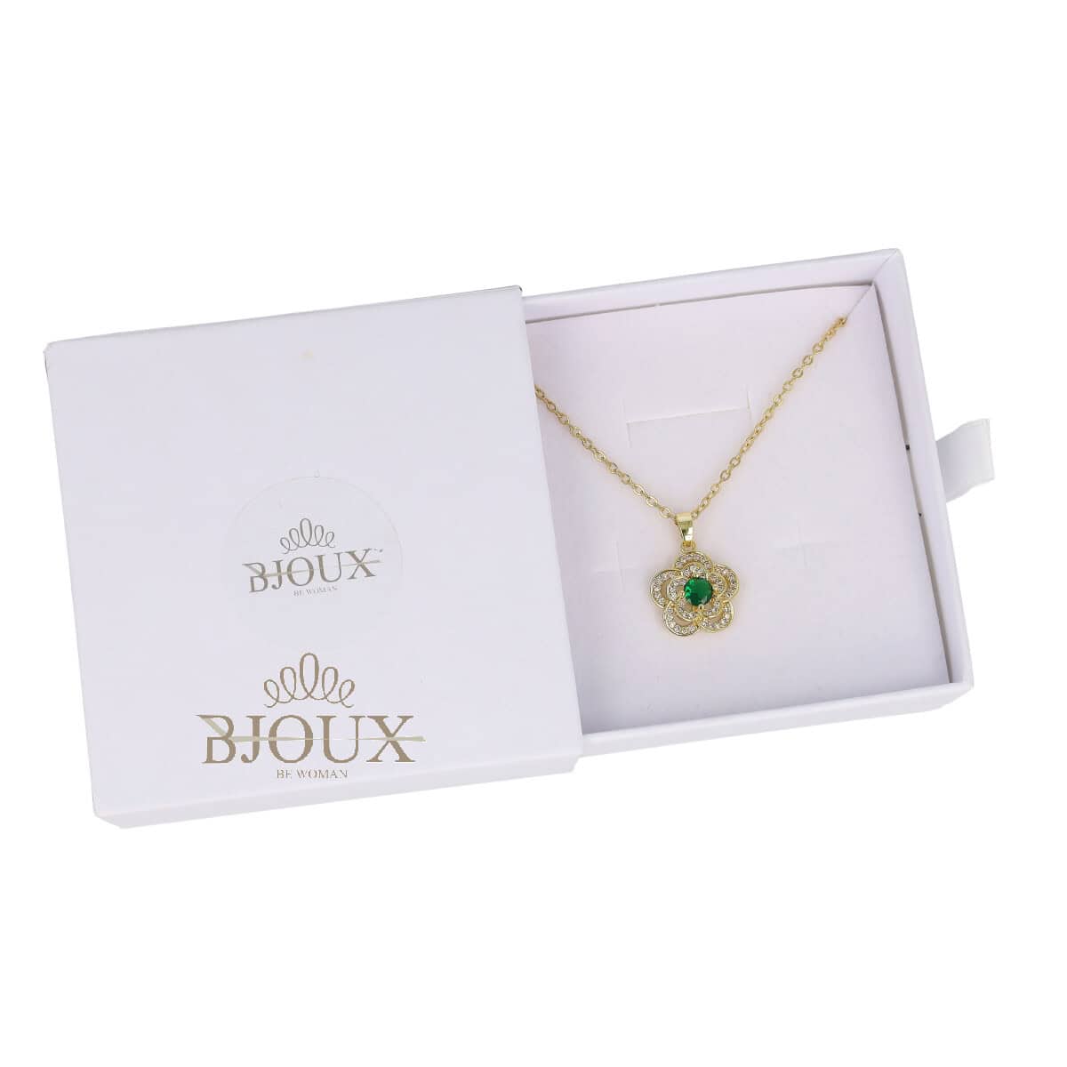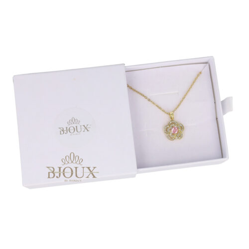 Confezione regalo per donna. Collana con catenina in acciaio inossidabile 40+5 cm con ciondolo pendente in ottone. Ciondolo 1,5 cm cm decorato da strass.
