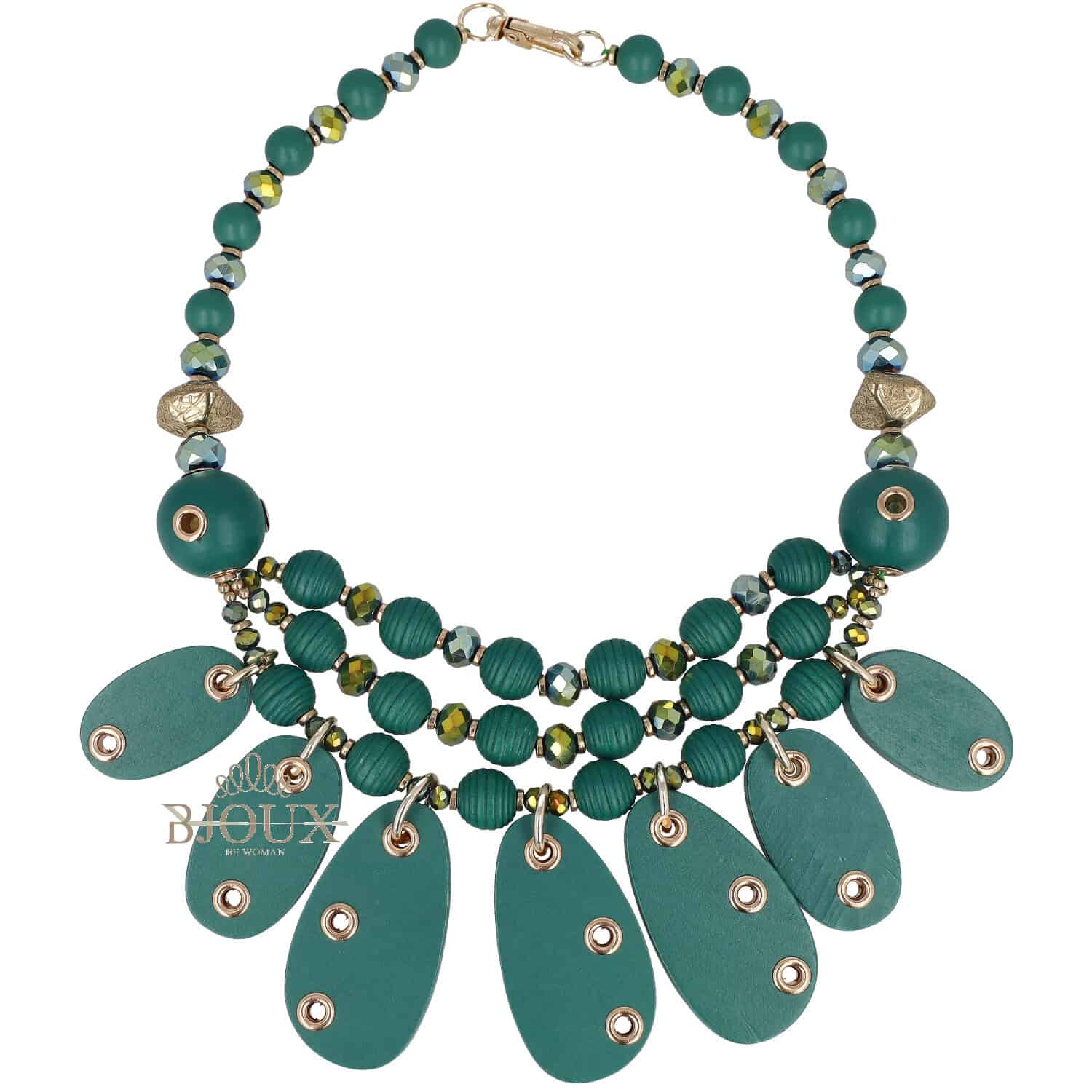 Collana con pendenti ovali in verde intenso e cristalli luminosi. Fresca, moderna e d’impatto.