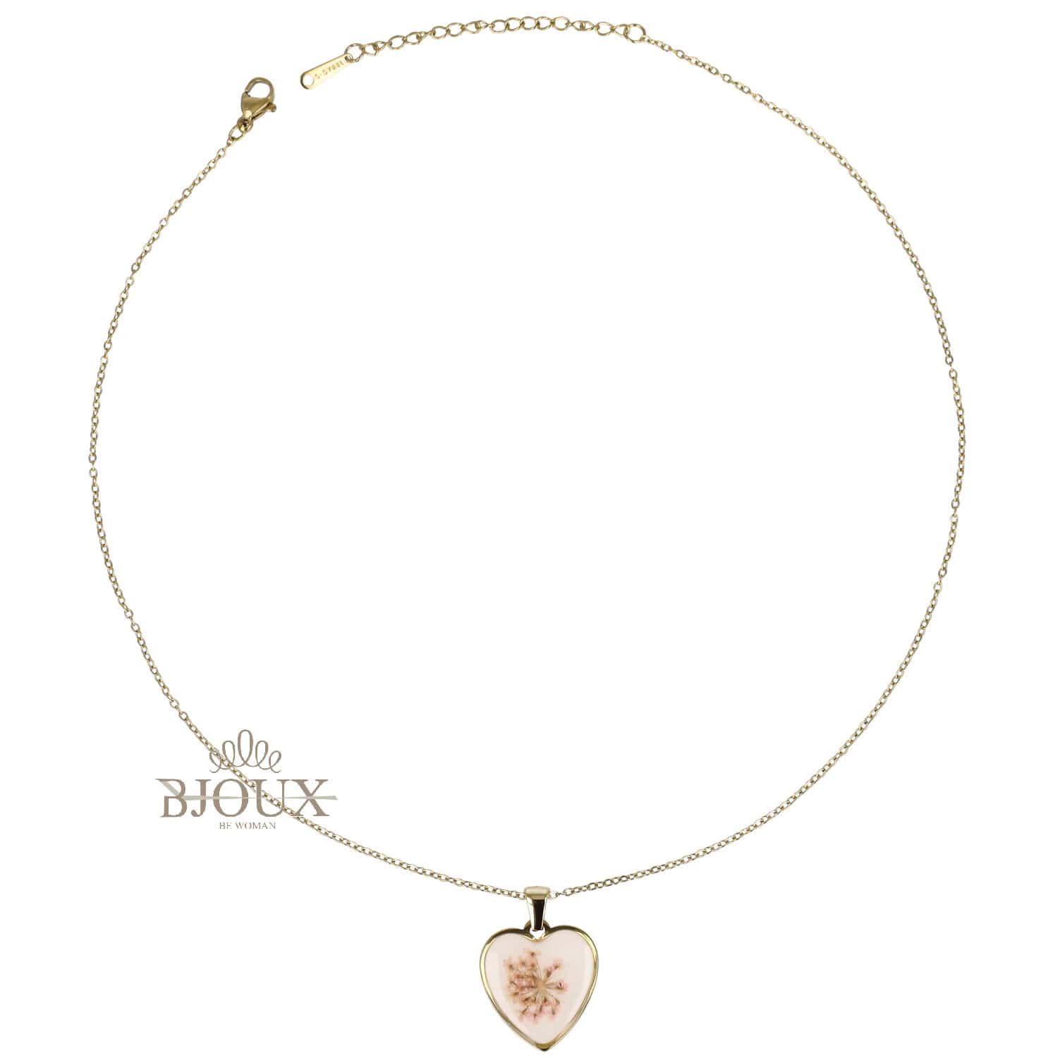 Collana in acciaio inox con finitura oro, caratterizzata da un ciondolo a cuore smaltato con fiori rosa al centro. Un modello romantico e femminile, perfetto come idea regalo.