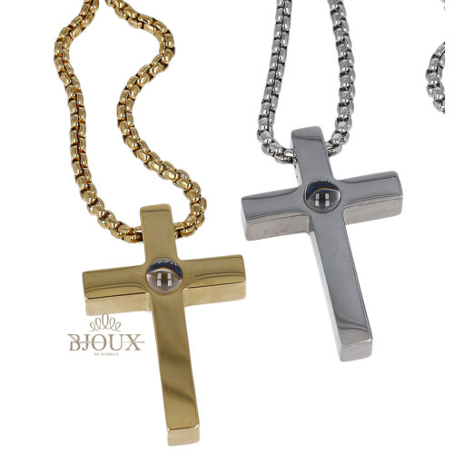 Collana in acciaio inossidabile catena lunga da 50 cm coda di topo con crocetta da 3,5 x 2,5 cm