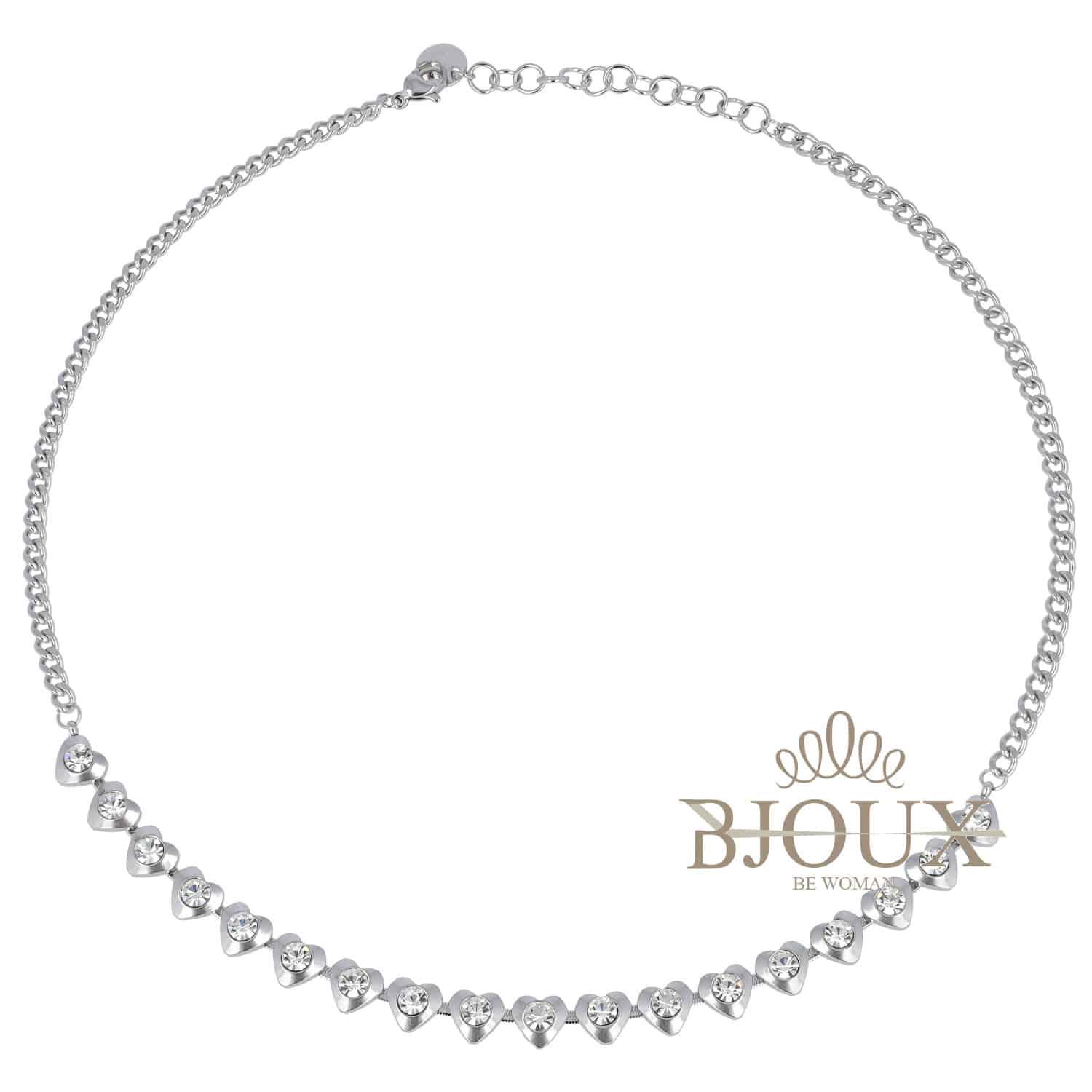Collana bigiotteria donna in acciaio inossidabile con cuori decorati da punti luce in strass kry