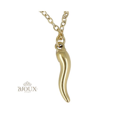 Collana bigiotteria in acciaio inossidabile anallergico catenina con centrale cornetto . In due colori disponibili. Dim.1,5 cm