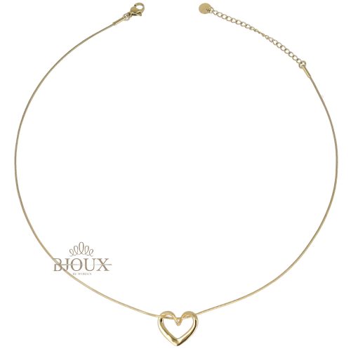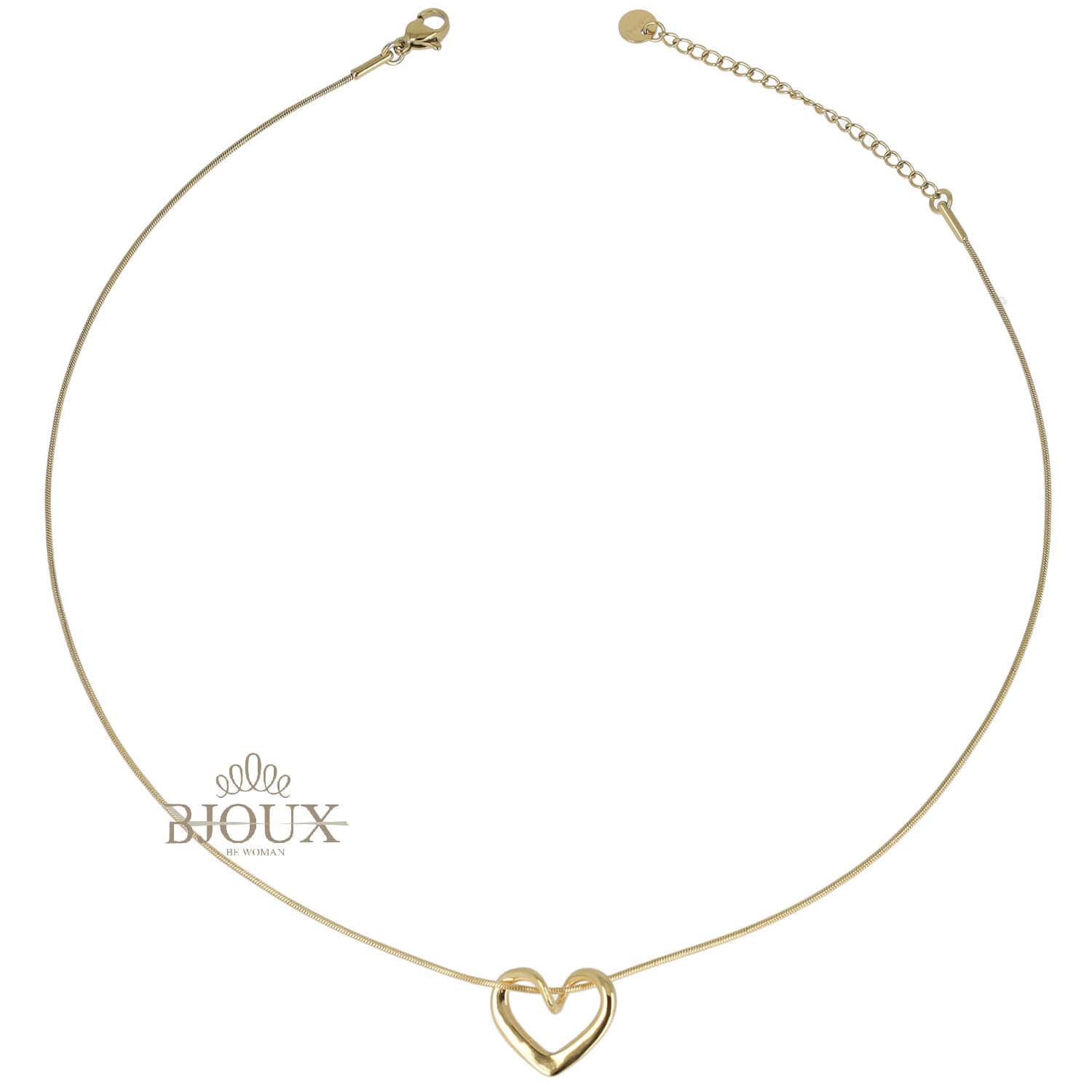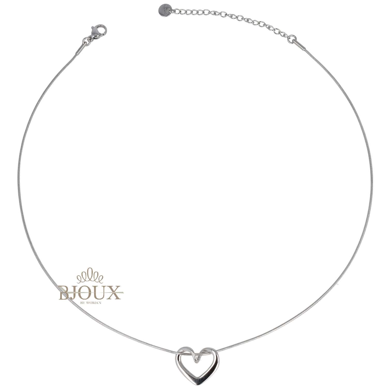 Collana di bigiotteria in acciaio inossidabile con catena coda di topo. Lunghezza 37 + 5 cm di estensione, cuore passante centrale da 1,5×1,5 cm