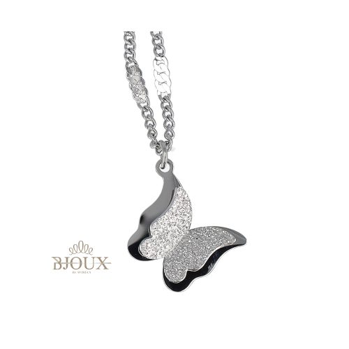 Collana cateninaย in acciaio inossidabile con centrale pendente a farfalla, disponibile in oro , gold rose e in argento.