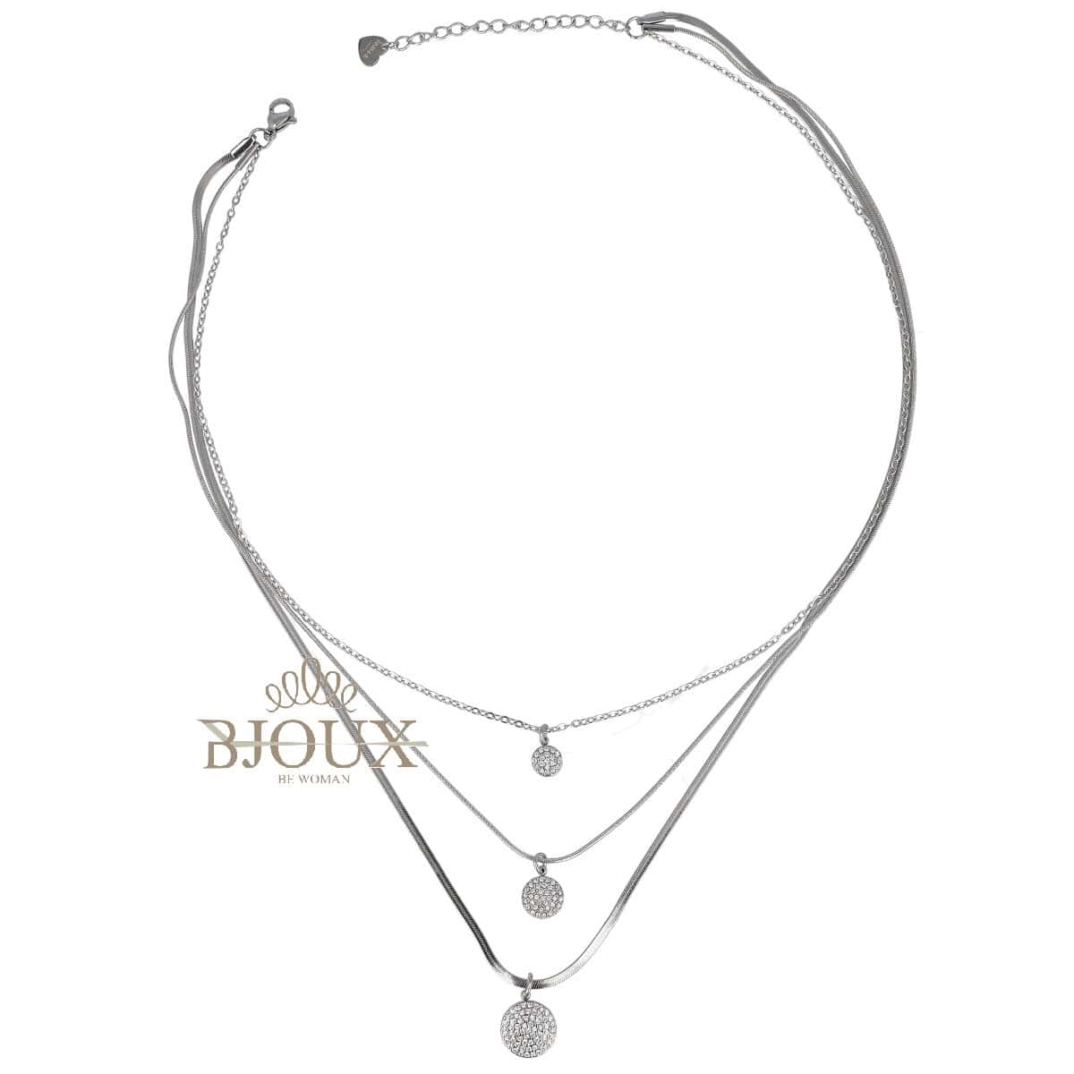 Collana bigiotteria donna in acciaio inossidabile. Catenina modello snake da 45 cm , catenina da 40 cm e snake da 37 cm con estensione. Ciondoli tondi luminosi a gradazione