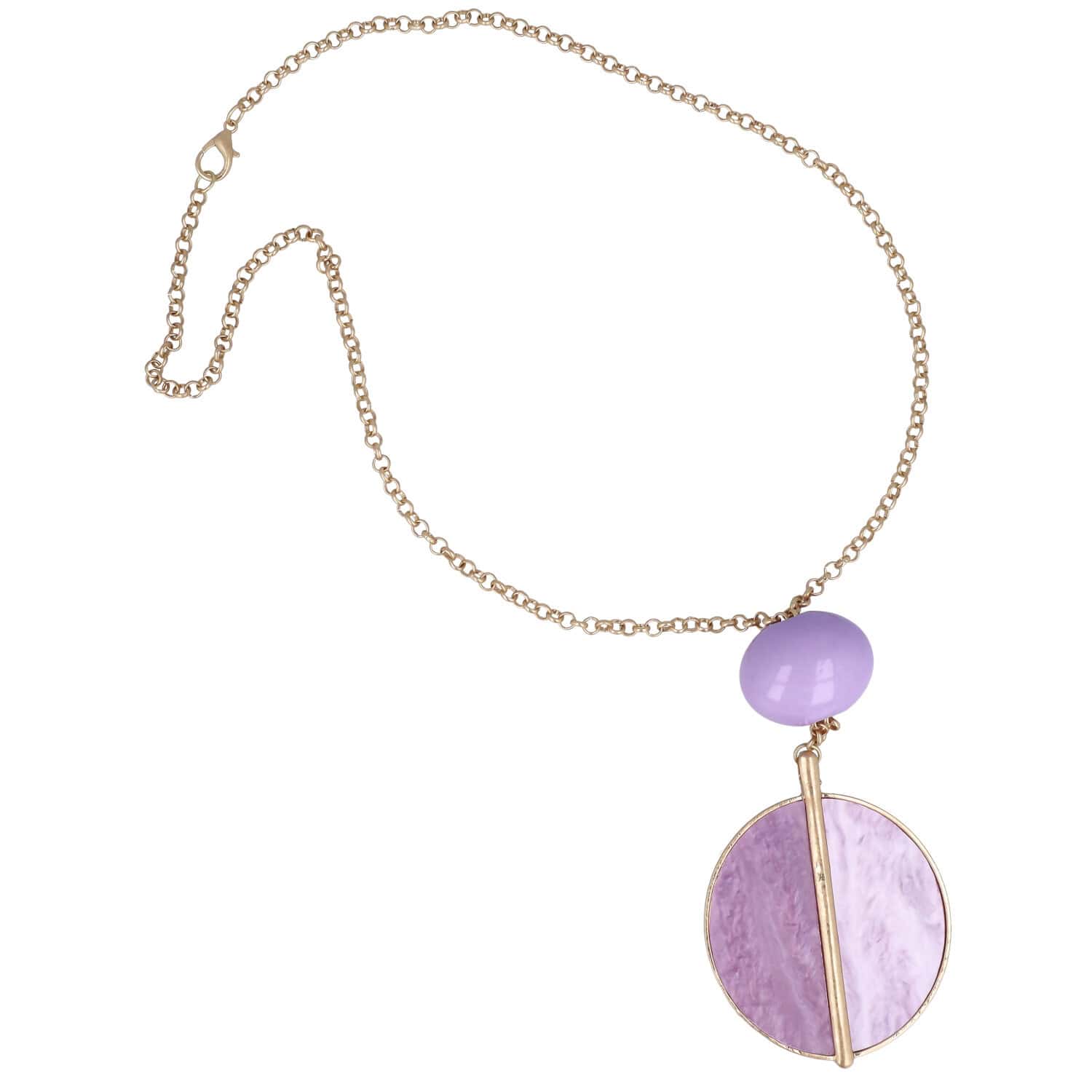 Collana con pendente lavanda e disco marmorizzato viola in acrilico. Delicata, femminile e luminosa. Lunghezza 50 cm
