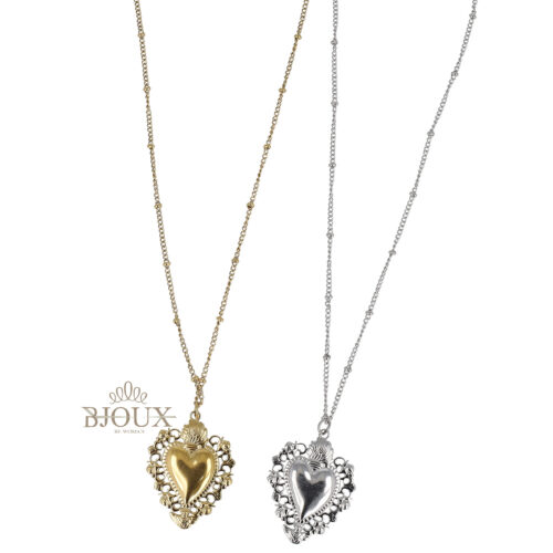 Materiale: Acciaio inossidabile – Lunghezza: 80 + 5 cm regolabile – Chiusura: Moschettone – Ciondoli: 1 cuore Sacro da 3,5 cm