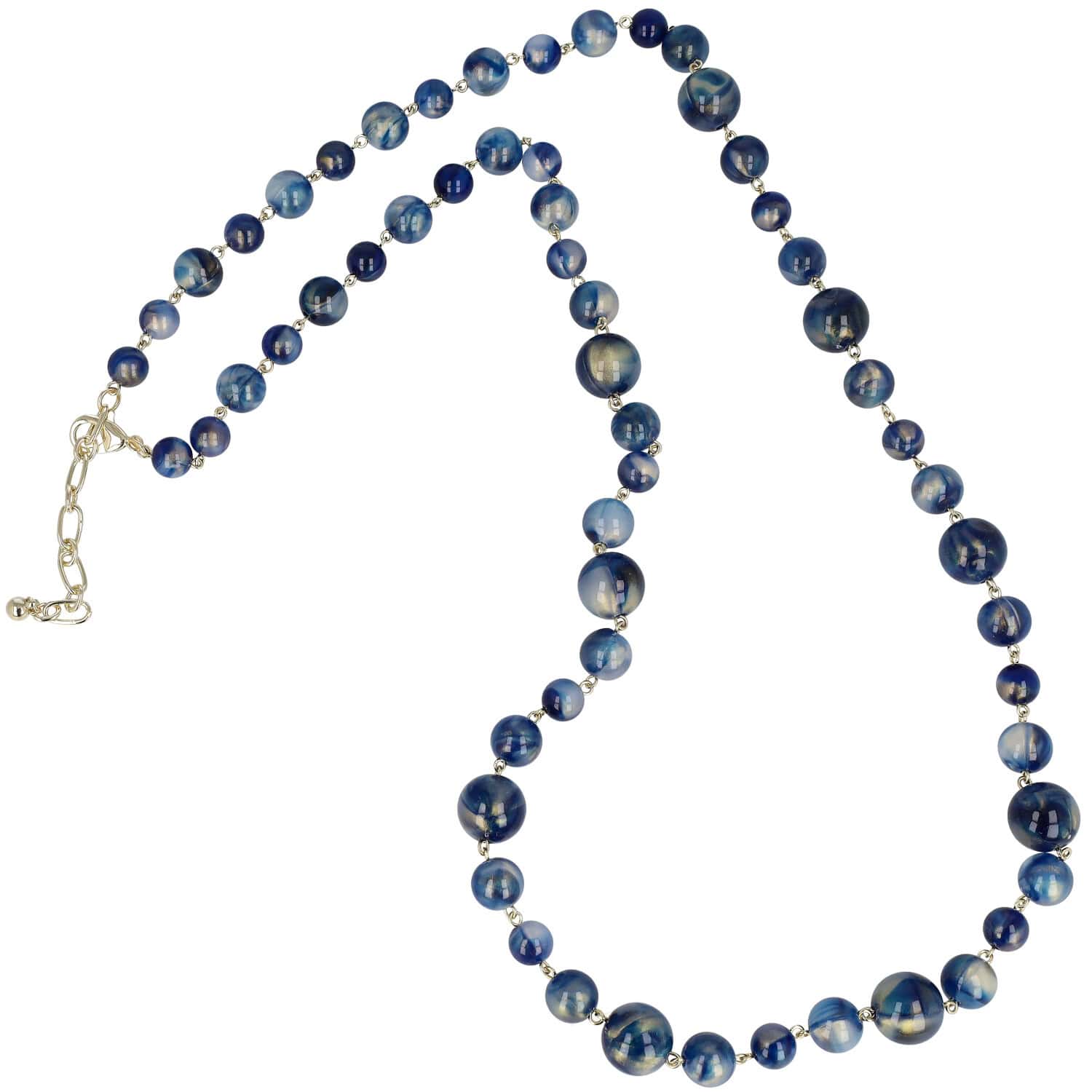 Collana lunga da donna composta da chiusura catena in ottone dorato e perle in vetro colorato. Chiusura regolabile in ottone. Lunghezza 45 cm