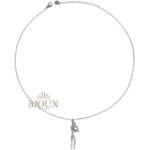 Collana donna modello girocollo. Collana composto da una catenina sottile di tipo “forzatina”, a maglie piccole e ovali con ciondolo raffigurante due figure stilizzate unite in un abbraccio, simbolo di affetto, vicinanza e amore eterno