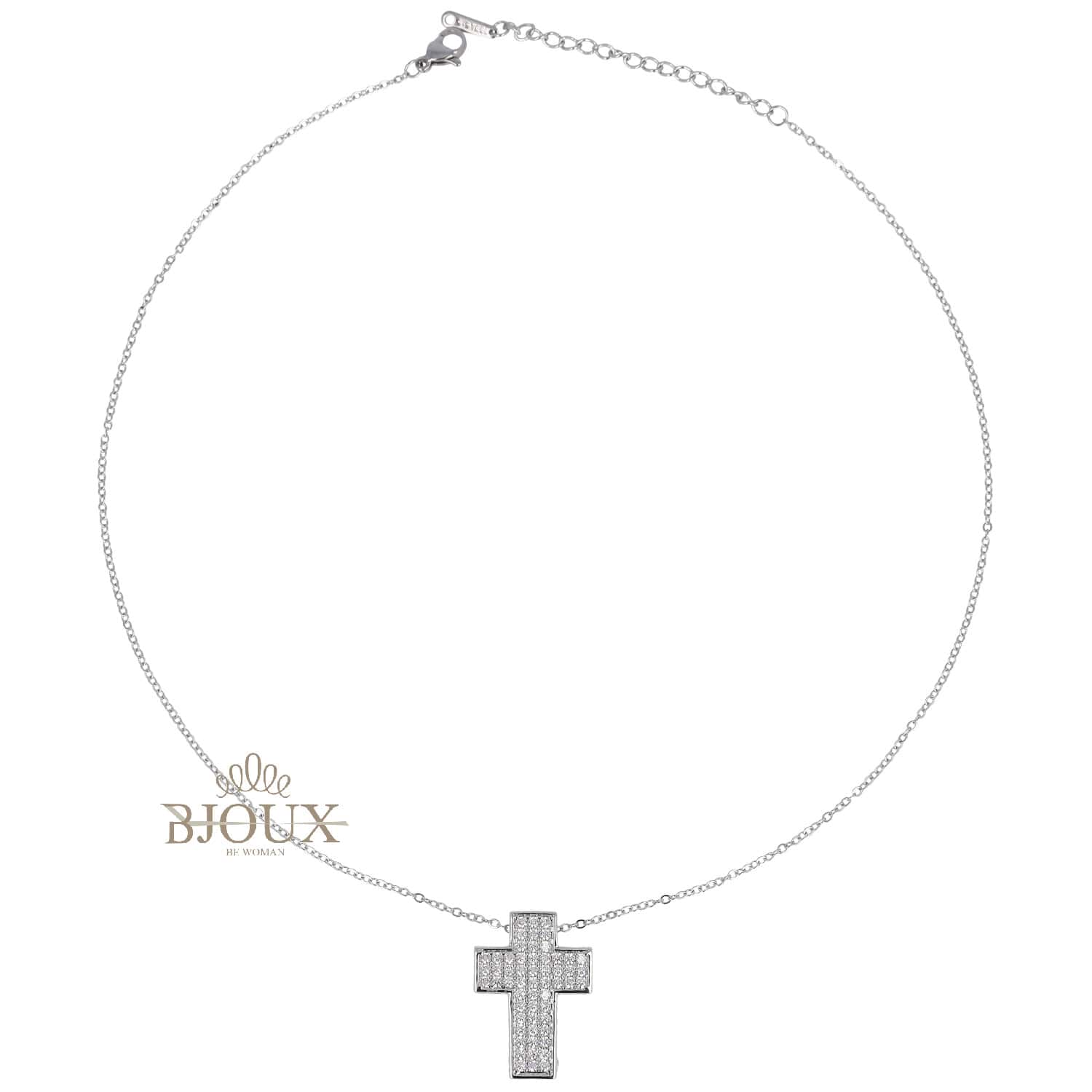 Collana di bigiotteria donna in ottone dipinto con catenina 40+5 cm pendente croce decorata da strass da 2,5 x 2 cm