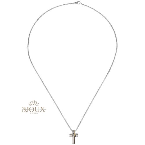 Collana in acciaio inossidabile a catena con pendente crocetta da 2×1 cm in 3d decorata da punto luce centrale. Con astuccio regalo 9×9 blu
