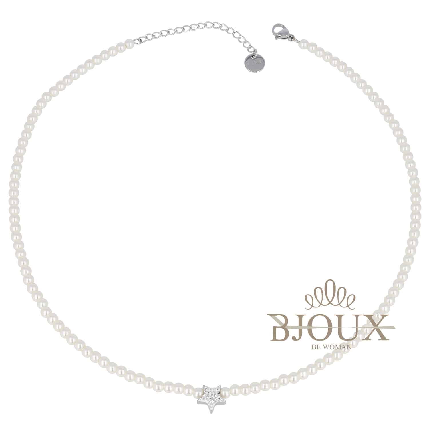 Collana bijoux da donna in perla da 4 mm e acciaio con pendente stella decorata da zirconi.
