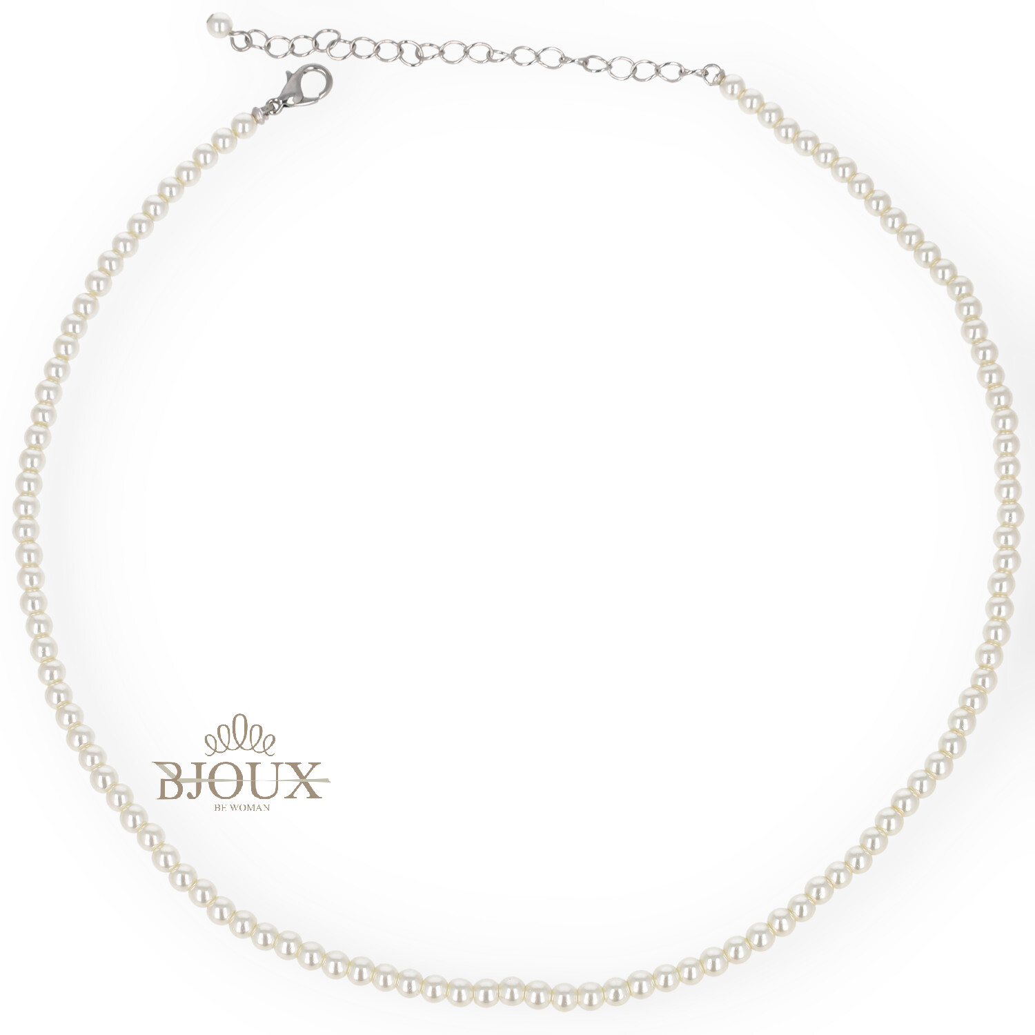 Collana realizzata con micro perle in vetro da 4 mm, perfettamente levigate e caratterizzate da una brillantezza delicata e raffinata.