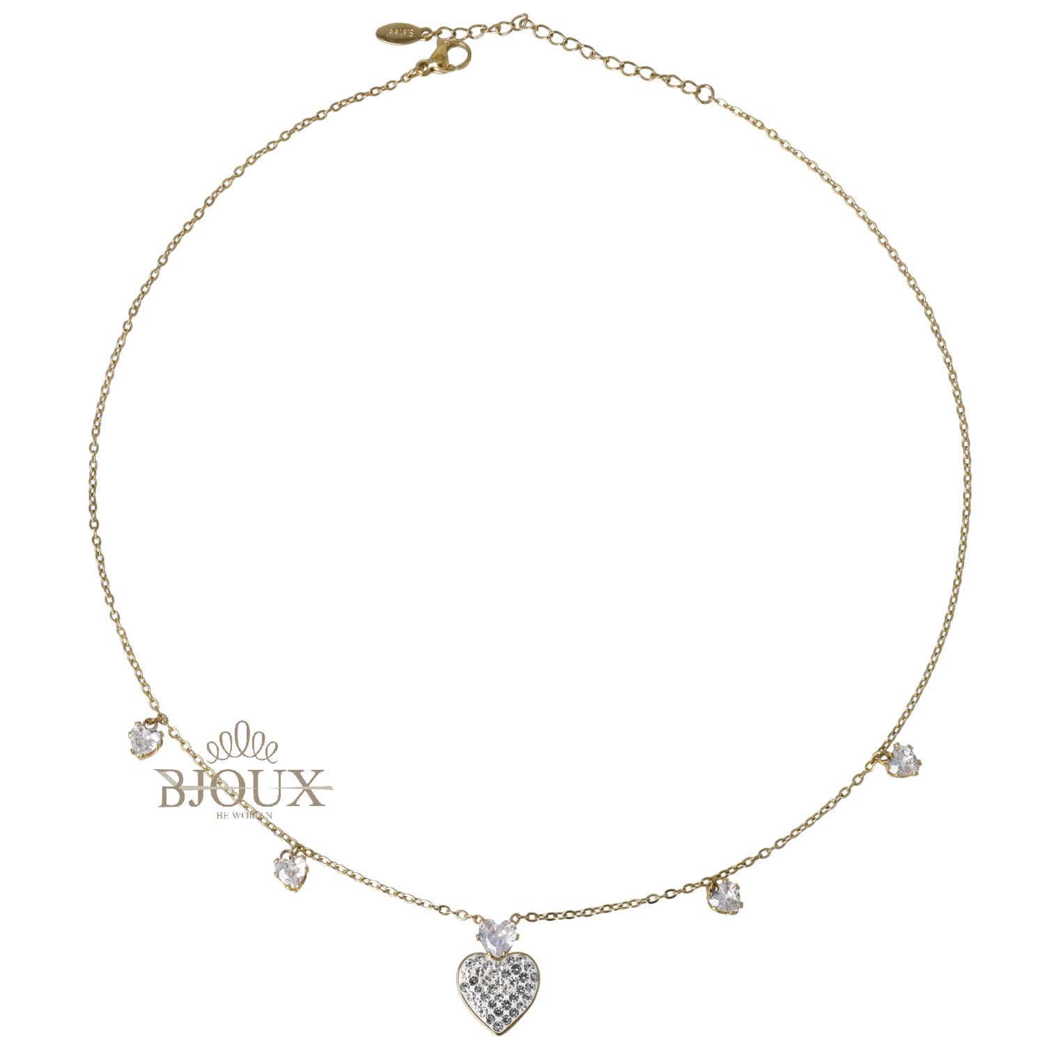 Collana bijoux modello a girocollo, catenina a misura regolabile 37+5 cm . Cuoricini punti luce con centrale cuore strass kry