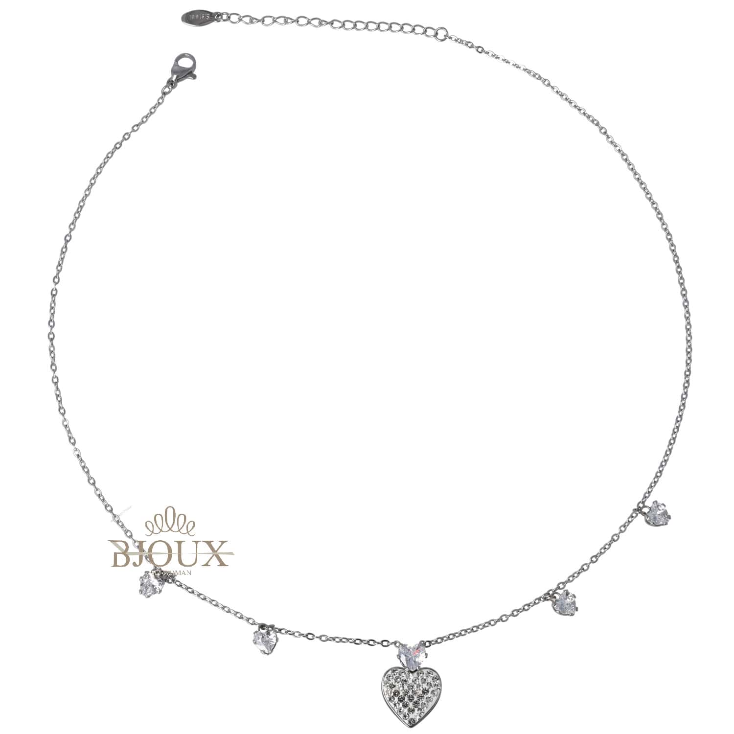 Collana bijoux modello a girocollo, catenina a misura regolabile 37+5 cm . Cuoricini punti luce con centrale cuore strass kry