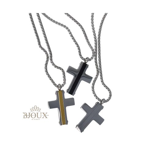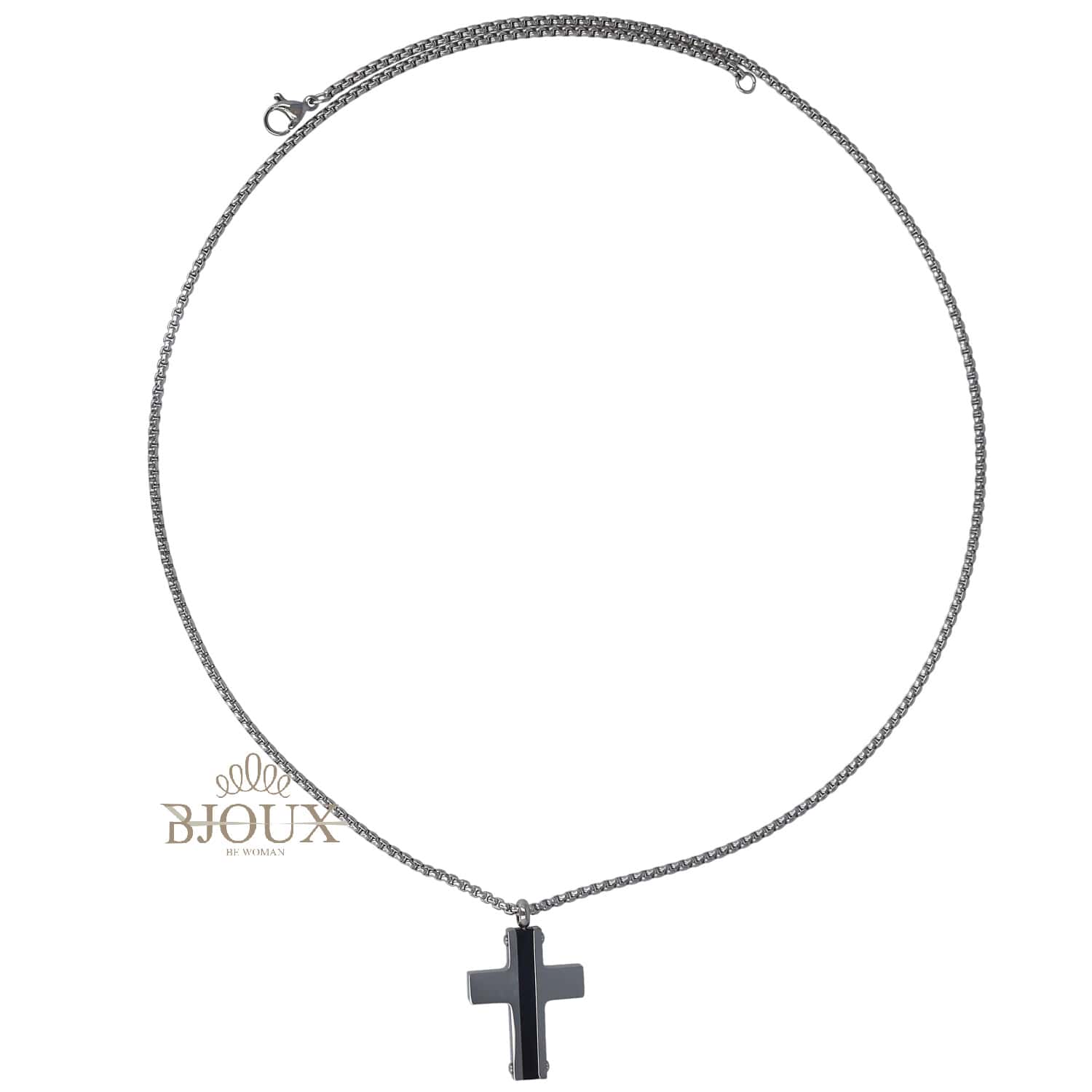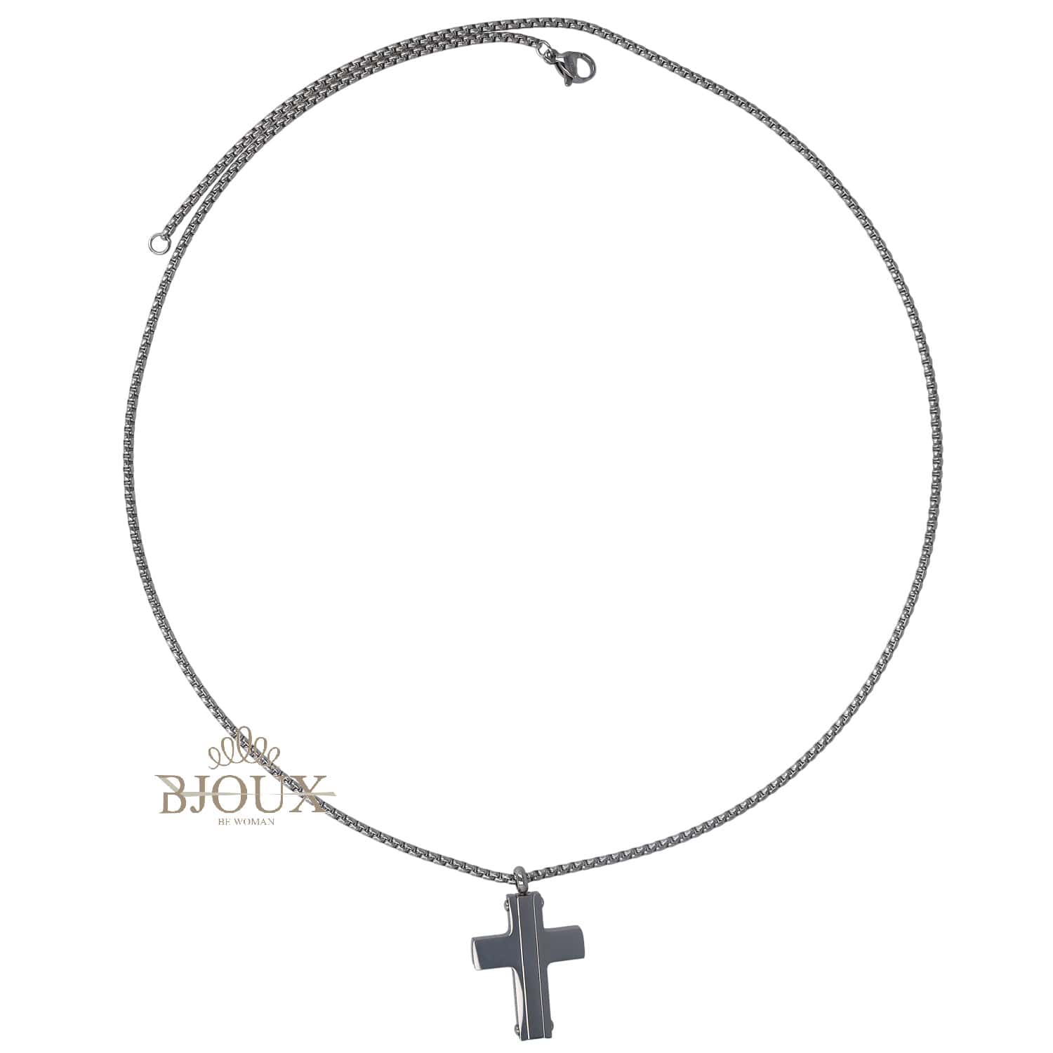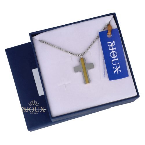 Collana di bigiotteria. Collana acciaio inossidabile 55 cm catena e ciondolo croce 2,5×2 cm. Con astuccio regalo 9×9 cm blu