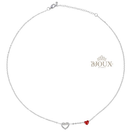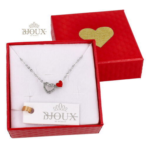 Collana di bigiotteria in ottone anallergico con cuoricini passanti. Colore rodio. Astuccio regalo 7×7