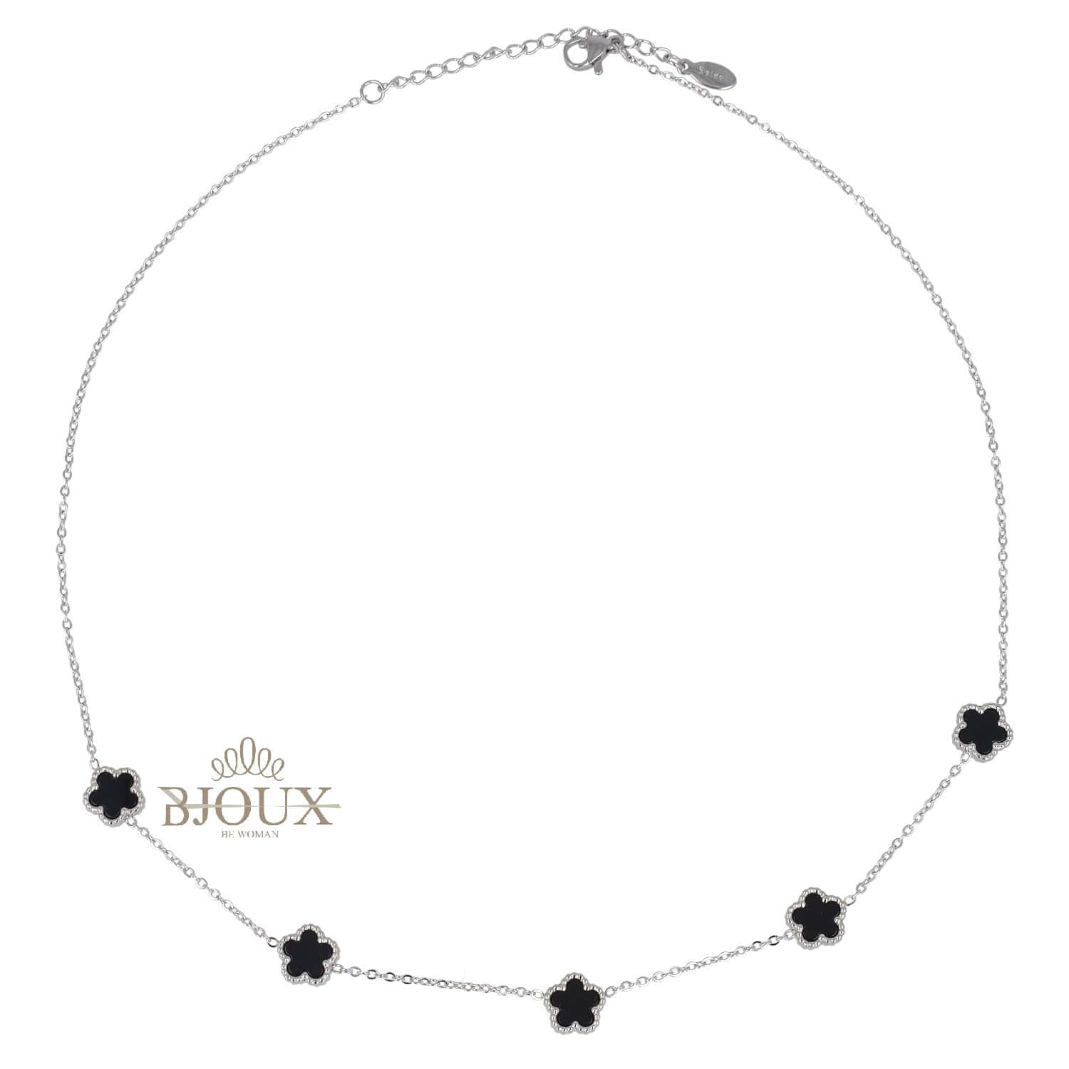 Collana catenina in acciaio inossidabile, 40+5 cm estensione. Girocollo con 5 fiorellini da 0,90 cm con interno colorato