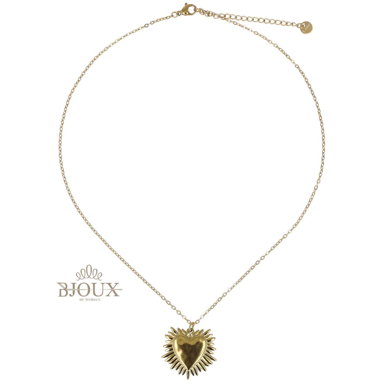 Collana in acciaio inossidabile, un design che fonde simbolismo e raffinatezza. Il cuore sacro centrale, realizzato in acciaio dorato, sprigiona una luce calda e preziosa che valorizza ogni outfit grazie al design con raggi.