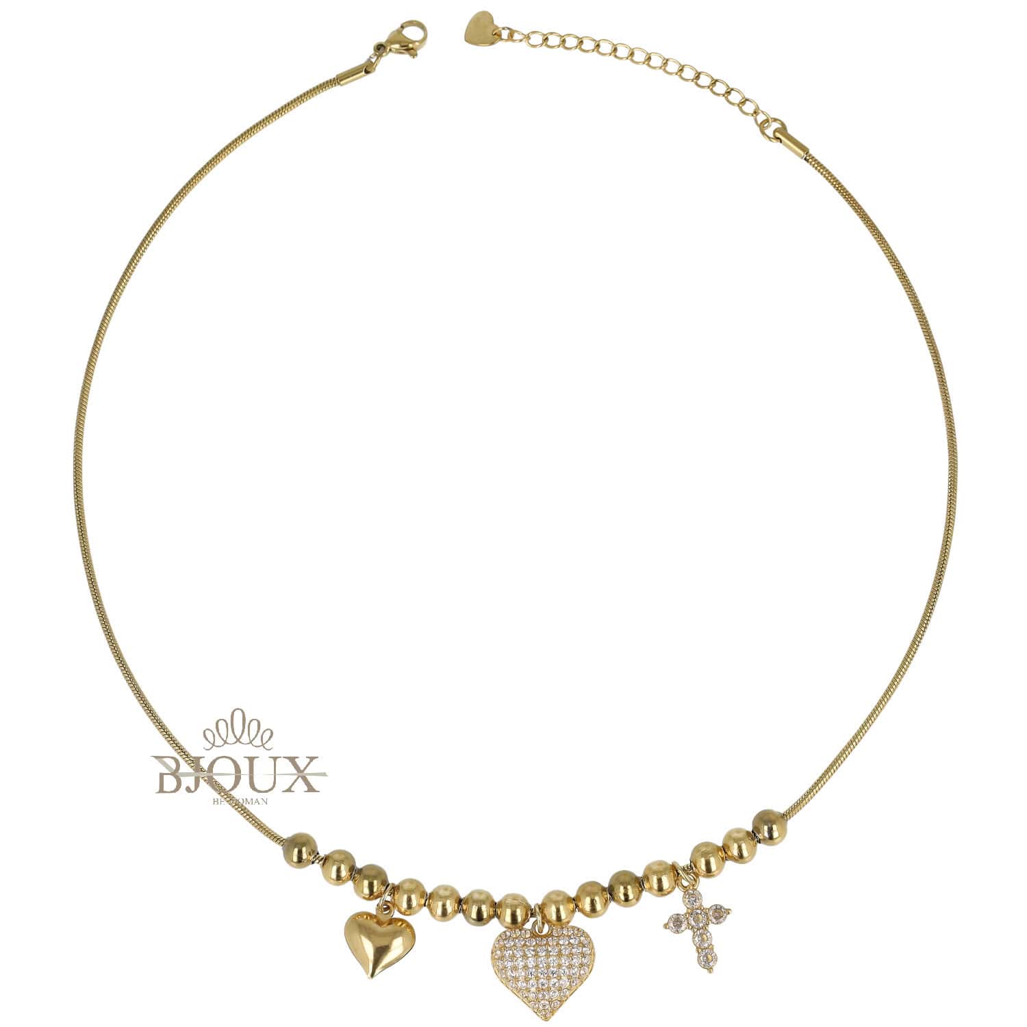 Ciondolo : 1,5 cm cuore strass – 1,2 cm crocetta – 1 cm cuore liscio