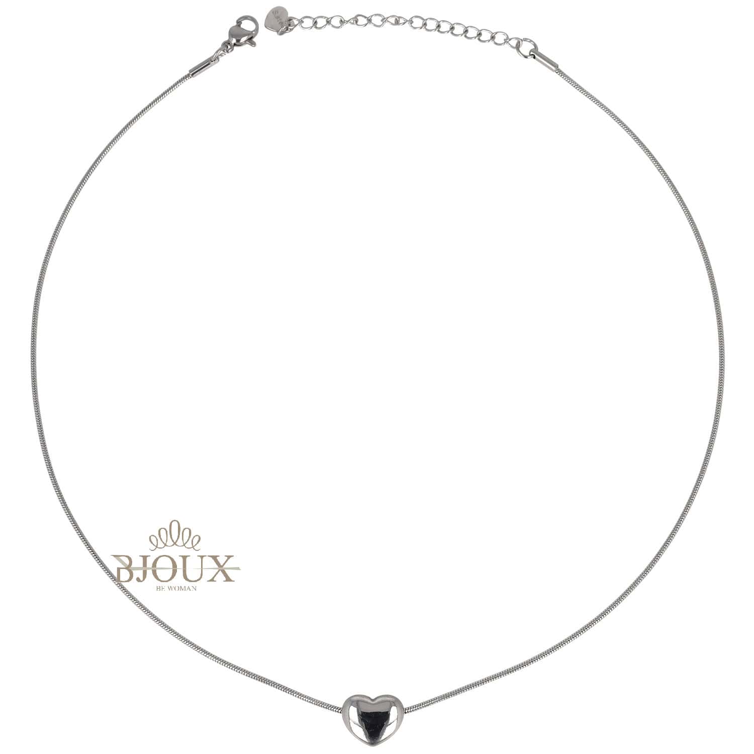 Collana modello snake con ciondolo cuore liscio centrale, minimal e raffinata.Disponibile in oro e rodio.