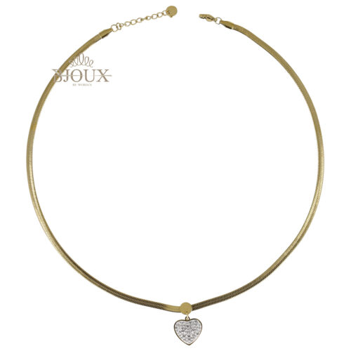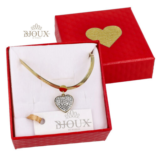 Collana di bigiotteria in acciaio modello snake con cuoricino passante . Lunghezza 20 cm + 5 cm estensione. Con astuccio 7×7