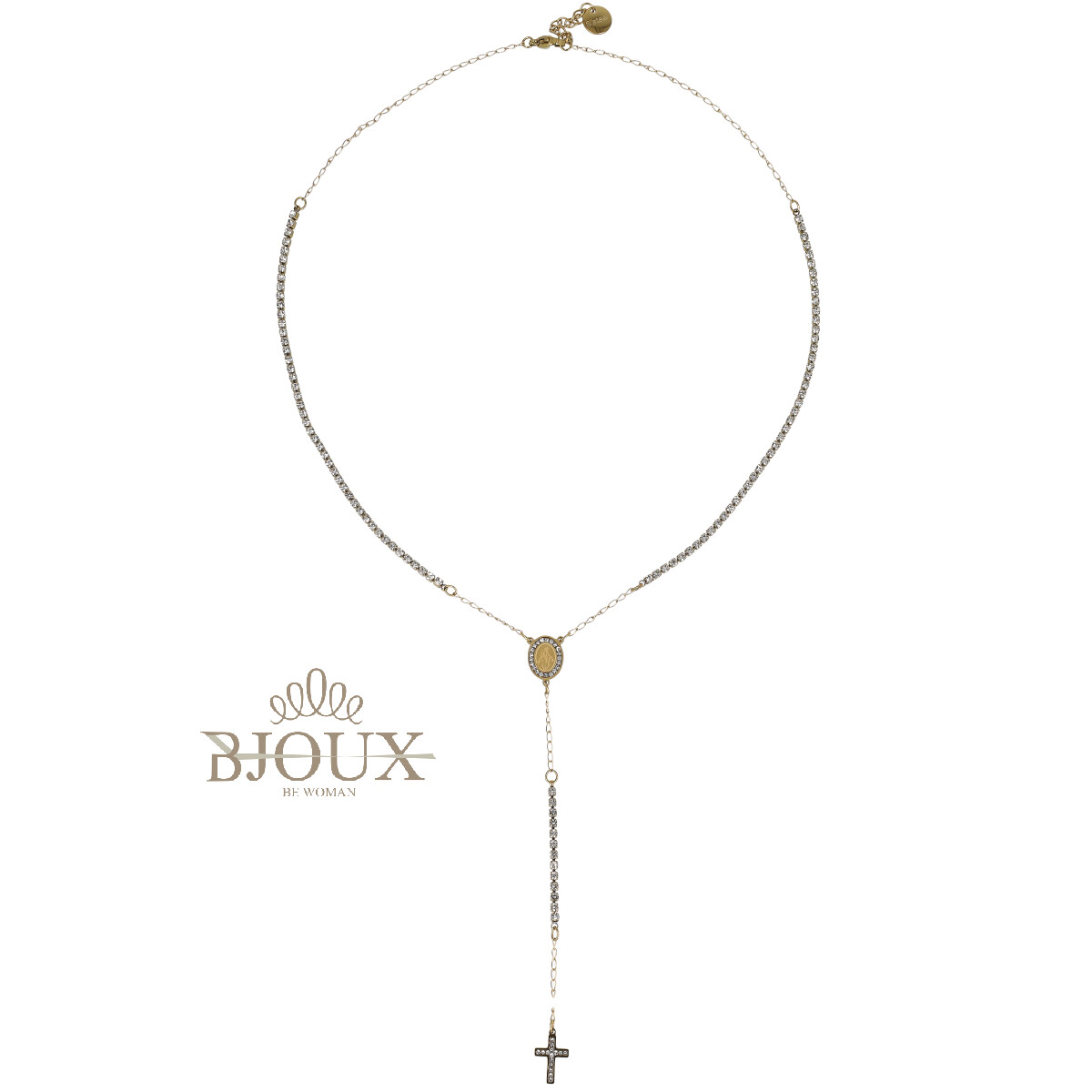 La collana tennis Rosario è una collana a Y composta da una fila continua di zirconi incastonati . Il pendente centrale scende delicatamente sul décolleté, creando un effetto slanciato e super luminoso.