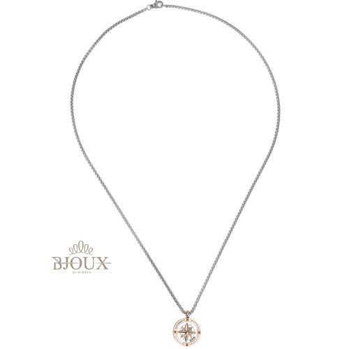Collana in acciaio inossidabile a catena con pendente bussola con rosa dei venti da 1,5 cm, in astuccio regalo 9×9