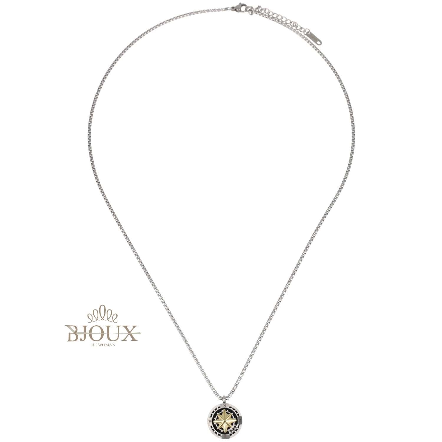 Collana in acciaio inossidabile a catena con pendente bussola con rosa dei venti da 1,5 cm, in astuccio regalo 9×9
