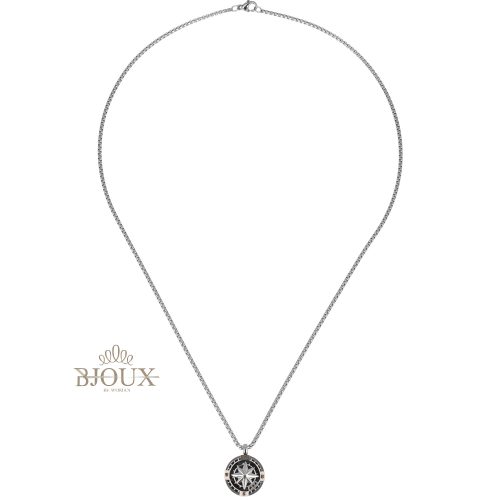 Collana in acciaio inossidabile a catena con pendente bussola con rosa dei venti da 1,5 cm, in astuccio regalo 9×9