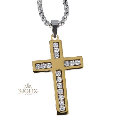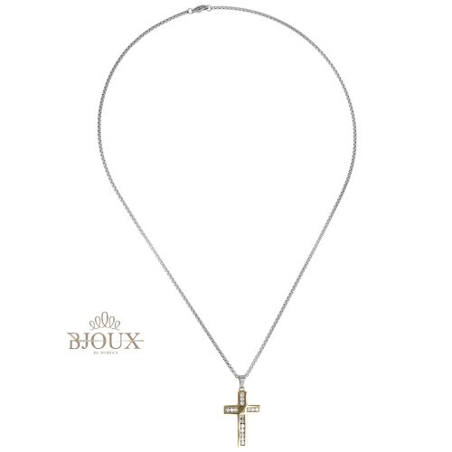 Collana in acciaio inossidabile a catena con pendente crocetta da 3×2 cm decorata da strass kry, in astuccio regalo 9×9