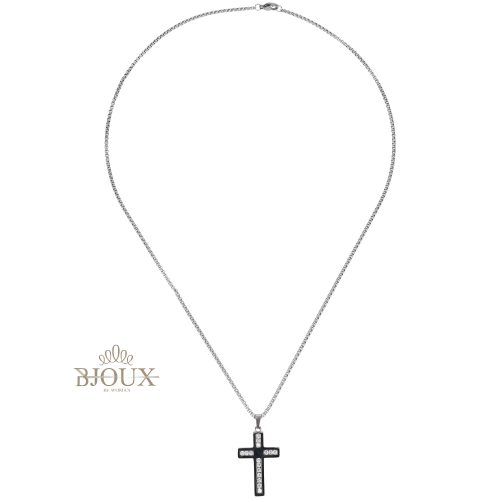 Collana in acciaio inossidabile a catena con pendente crocetta da 3×2 cm decorata da strass kry, in astuccio regalo 9×9